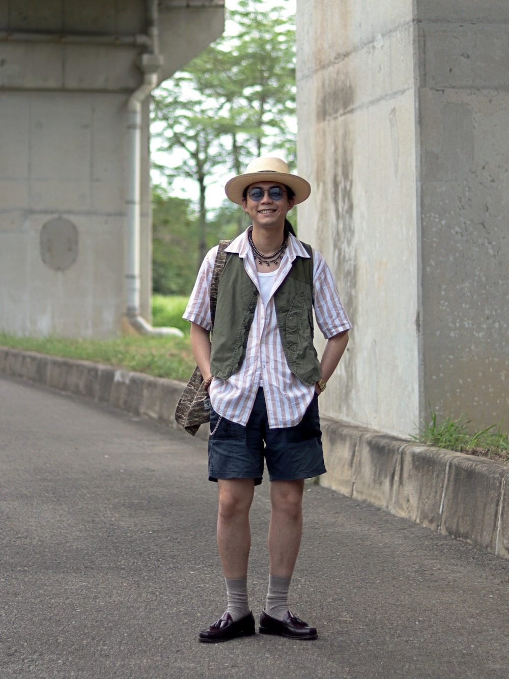 ベージュ系のハットを着用したメンズの夏コーディネートの2枚目の写真