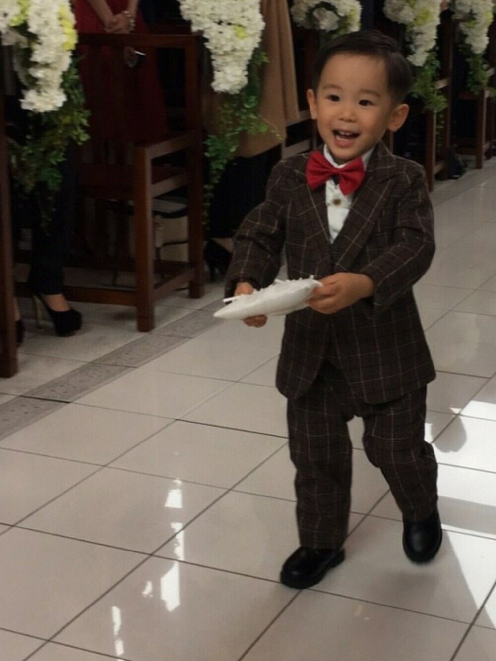 じぃじもばぁばも 孫に溺愛 「リングボーイできる?」 「僕、出来なーい」 不安を隣に チャペルタイム がスタート スマートに 決めるmy son