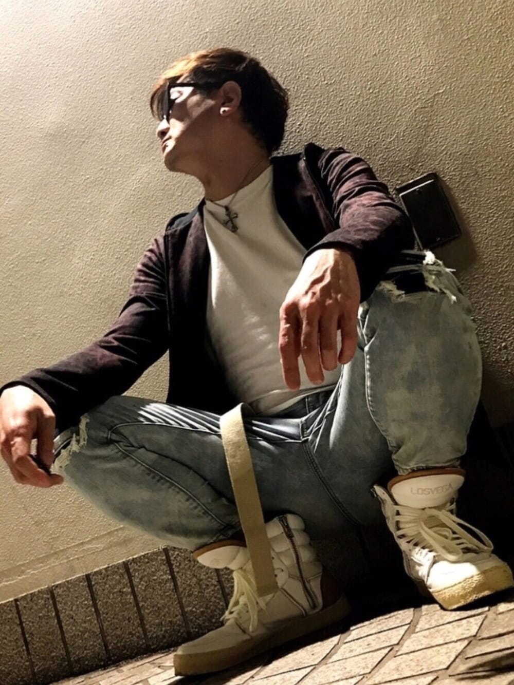 hiroのパーカー「エンジ&ブラックの総柄」を使ったコーディネート