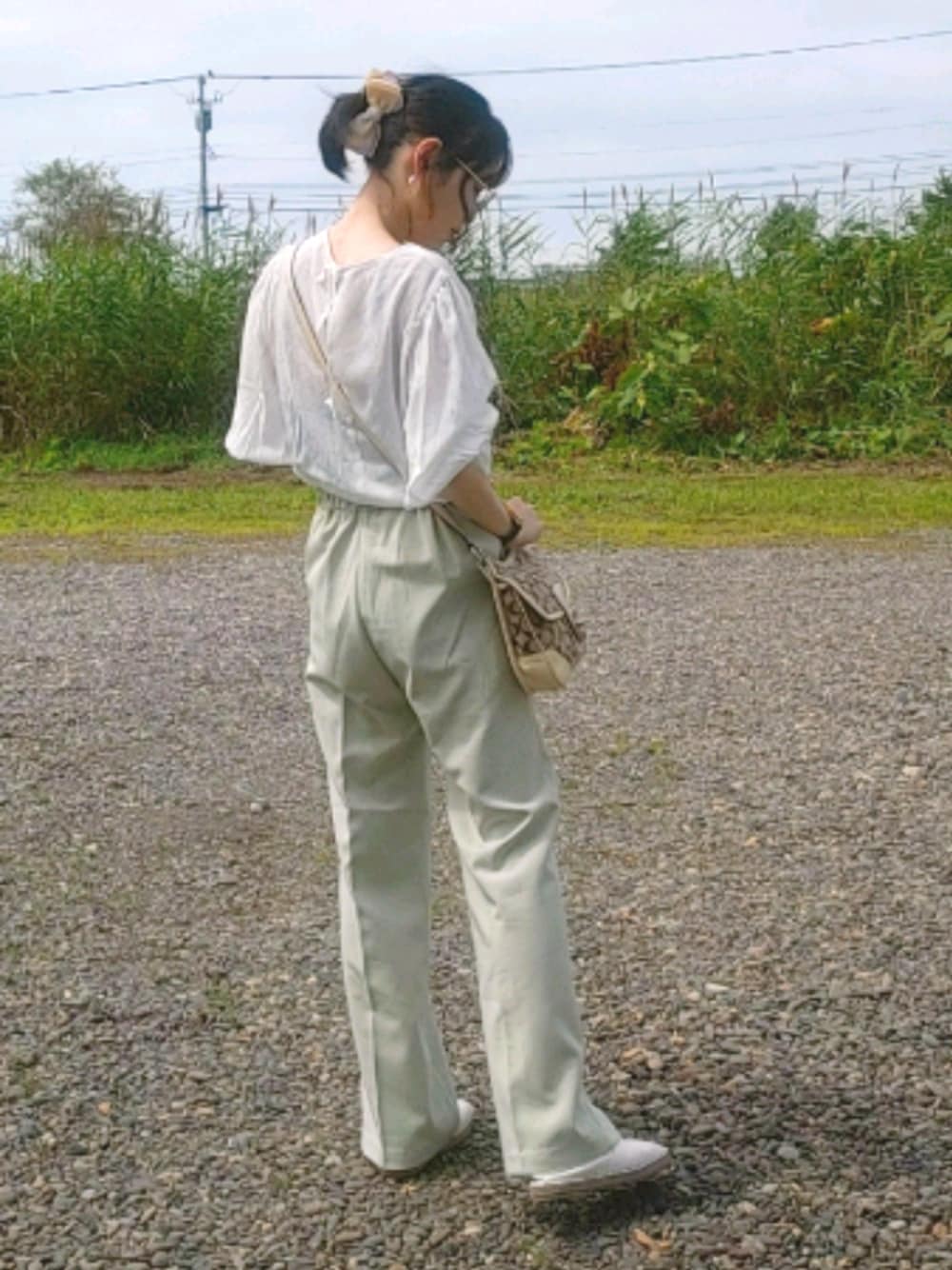 バックデザインがかわいいブラウスを主役にシンプルかつ爽やかにしてみました。