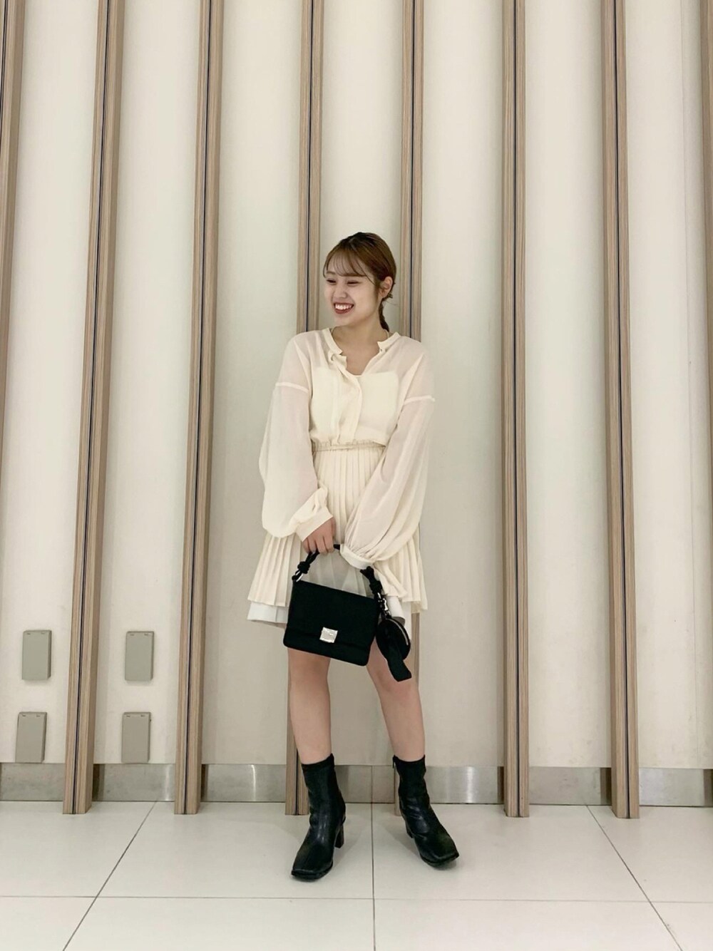oriuchi manariのシャツ/ブラウス「ジョーゼットプリーツチュニック」を使ったコーディネート
