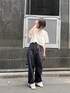 nonokuaki(LA PEAU DE GEM/led.tokyo/ooju/uneven)のデニムパンツ「【LA PEAU DE GEM】high waist straight denim pants/ハイウエストストレートデニムパンツ」を使ったコーディネート