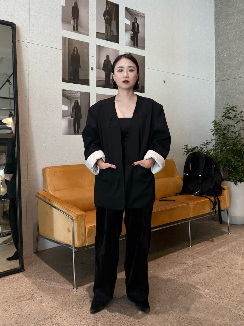 nonokuaki(LA PEAU DE GEM/led.tokyo/ooju/uneven)のノーカラージャケット「【LA PEAU DE GEM】no collar hole jacket/ノーカラーホールジャケット」を使ったコーディネート
