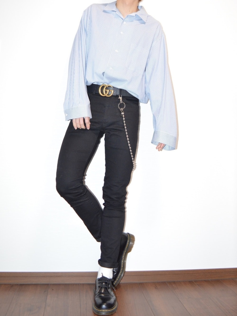 春コーデ✨ お気に入りのストライプシャツを着てシンプルに合わせたコーデ😋 アームにボリュームがあって可愛いシルエットがポイントです😝