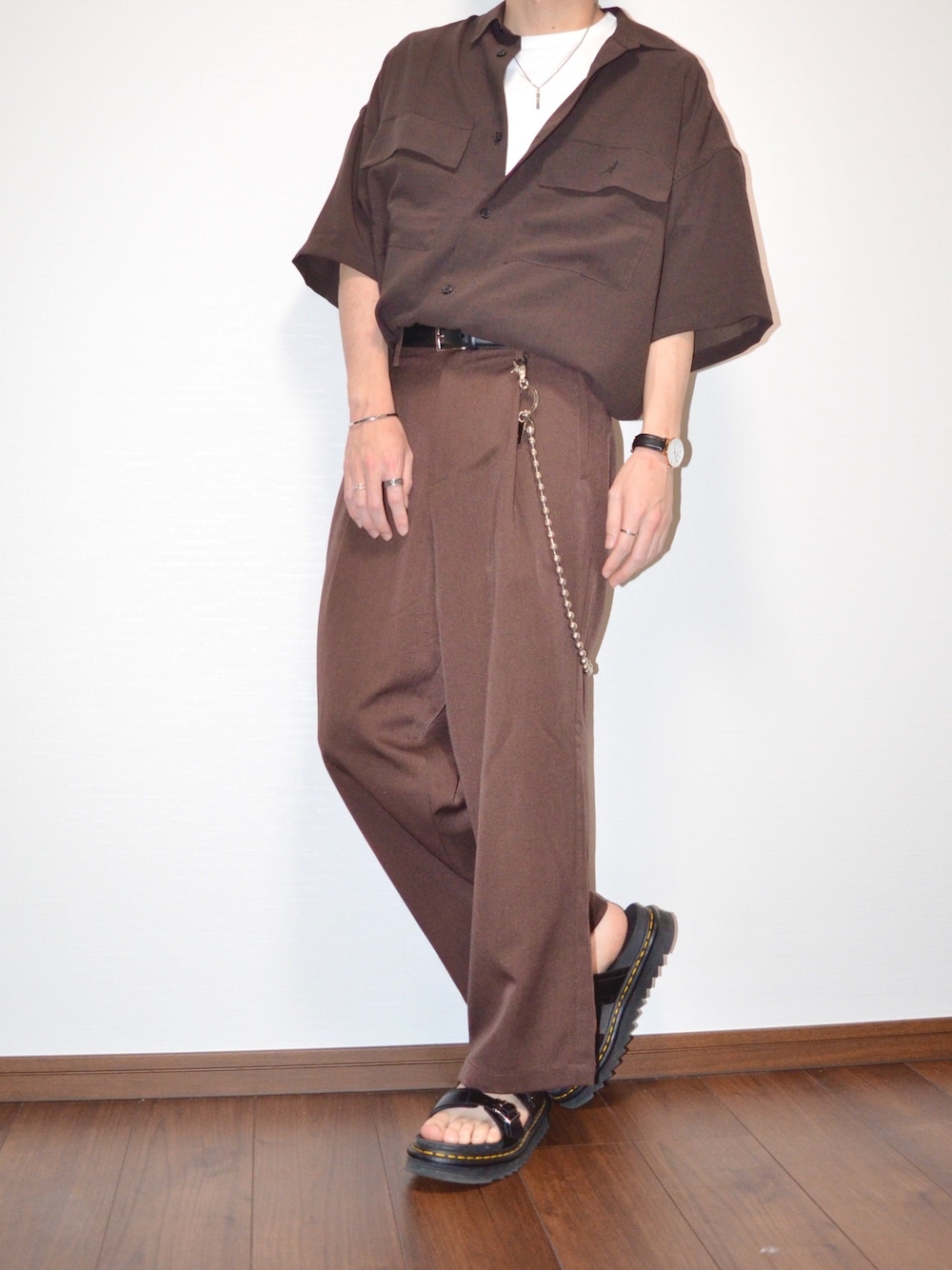 ワントーンコーデ✨ KANGOLのシャツにブラウンのワイドパンツで全身茶色コーデ!😁 シンプルなワントーンなのでアクセサリー等を付けてあげるとgod👍