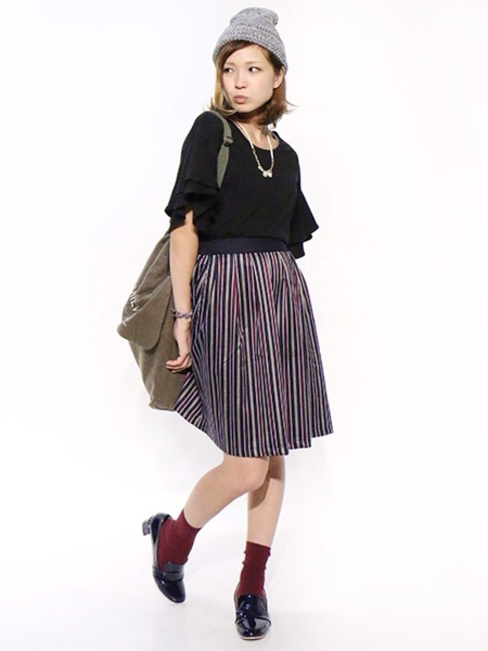 たなおのスカート「レジメンフレアスカート」を使ったコーディネート
