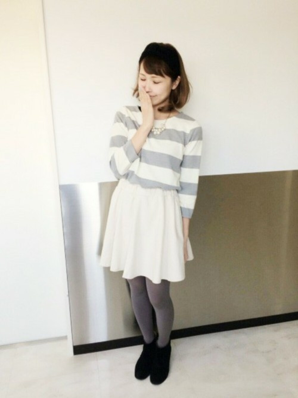 たなおのワンピース「リップル転換ボーダーワンピース」を使ったコーディネート