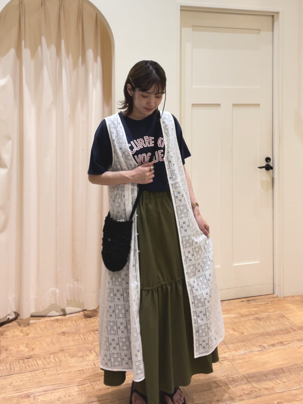 おはようございます🩵 ご覧頂きありがとうございます𖤐˒˒ 一枚合わせるとぐっとおしゃれ見えするレースジレを羽織ってみました🫐 スカートもドロストを絞ると形が変わってかわいいです𖤣𖥧𖥣𖡡𖥧𖤣 店頭では夏物、新作商品多数ご用意ございます❤︎春物、夏物最大半額とお買い得になっておりますのでぜひお気軽に見にいらして下さいね🌿🐾