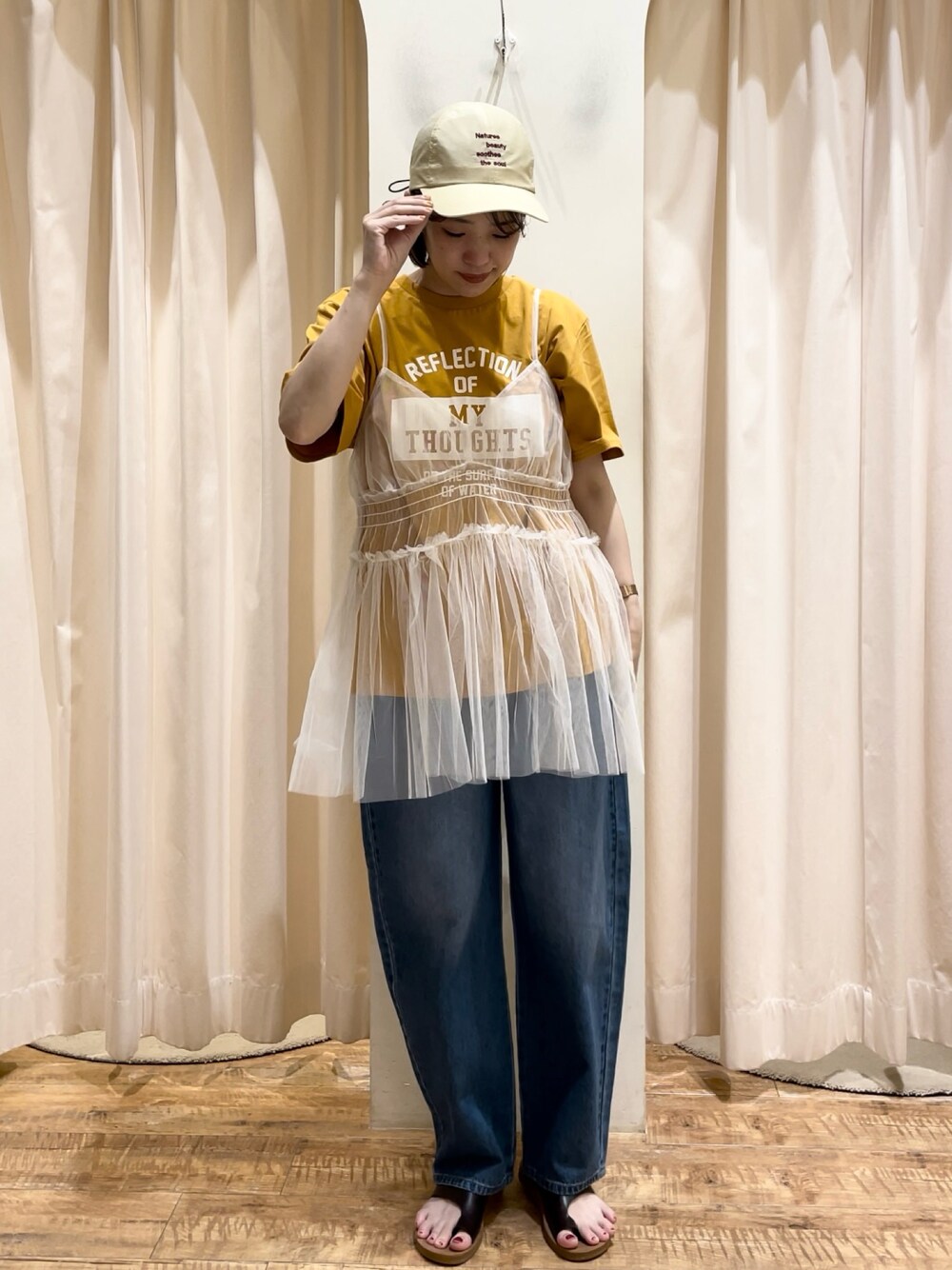 ご覧頂きありがとうございます🌻 チュールキャミとTシャツがセットになってます🐈トレンド感◎なチュールのキャミソールとっても可愛いです💛 デニムも程よいゆったりシルエットになっています👖