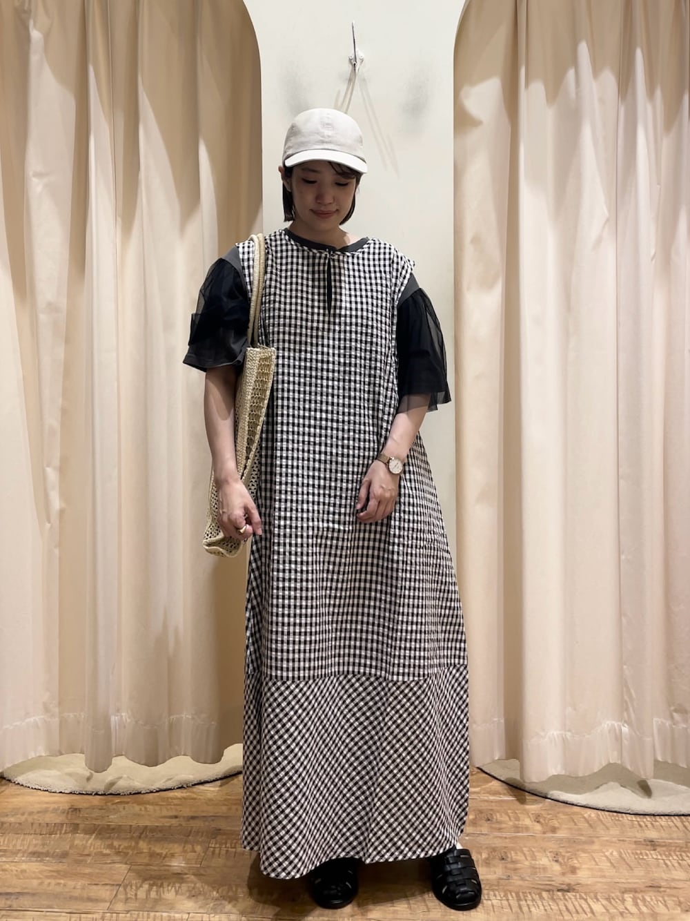 ご覧頂きありがとうございます! コクーン風のシルエットが珍しい着丈長めのワンピースです🤎大人でも着れる落ち着いたギンガムチェックになっています🐏 さらりと着れるので夏のお出かけにもぴったりです🌻 中に着ているチュールのカットソーは日曜日まで限定価格と大変お買い得となっております! ぜひ店頭にお立ち寄り下さいませ☺️
