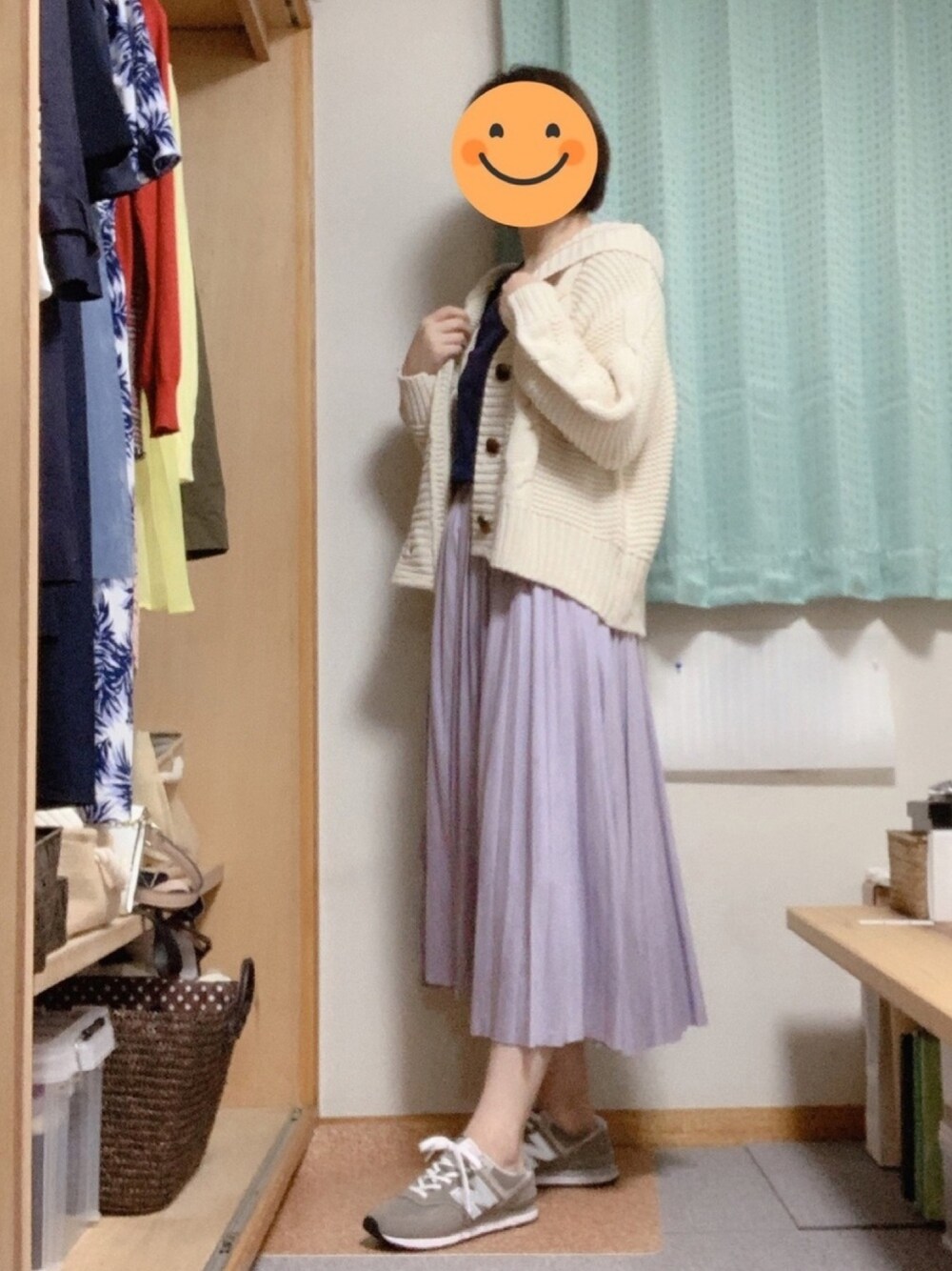 ニットパーカーにロングスカートのゆるゆるコーデがなんか落ち着きます(〃艸〃)