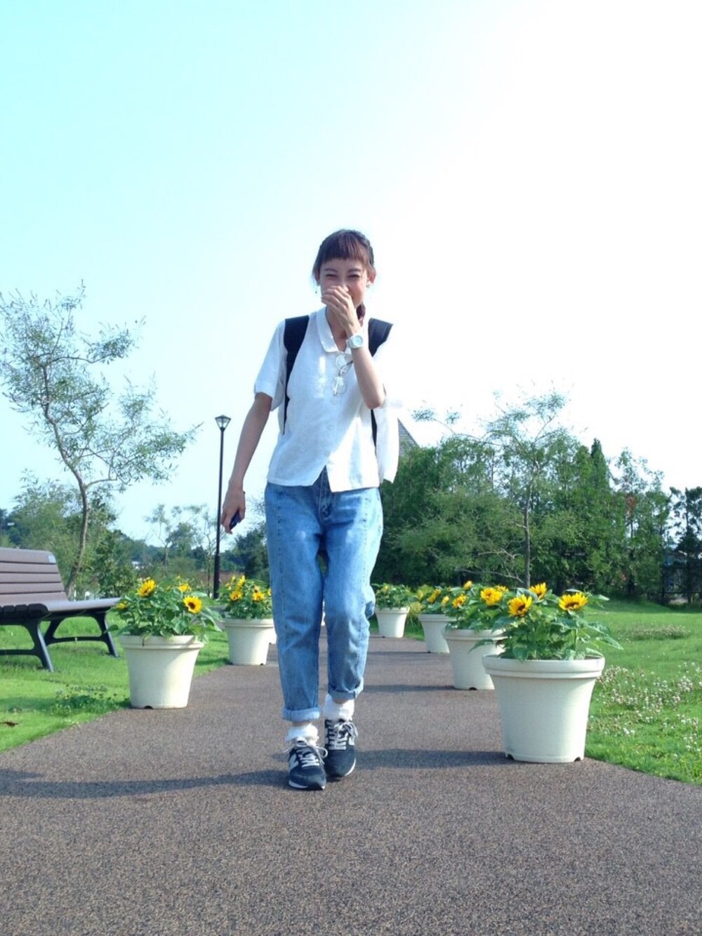 ほぼ全身シモキタで購入 。 白のシャツもデニムもお値段3ケタでした、たしか ⸜( ˆ࿀ˆ )⸝⸜( ˆ࿀ˆ )⸝ 学生のお財布に優しい〜〜! 場所は今話題のアンデルセン公園です!千葉にあります!