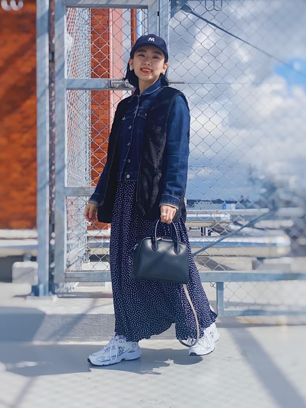 ネイビーと白 古着のラルフのデニムジャケットと barbour のベストで春っぽさを先取り🌸 白スニーカーで足下から軽さを持たせて。 instagram