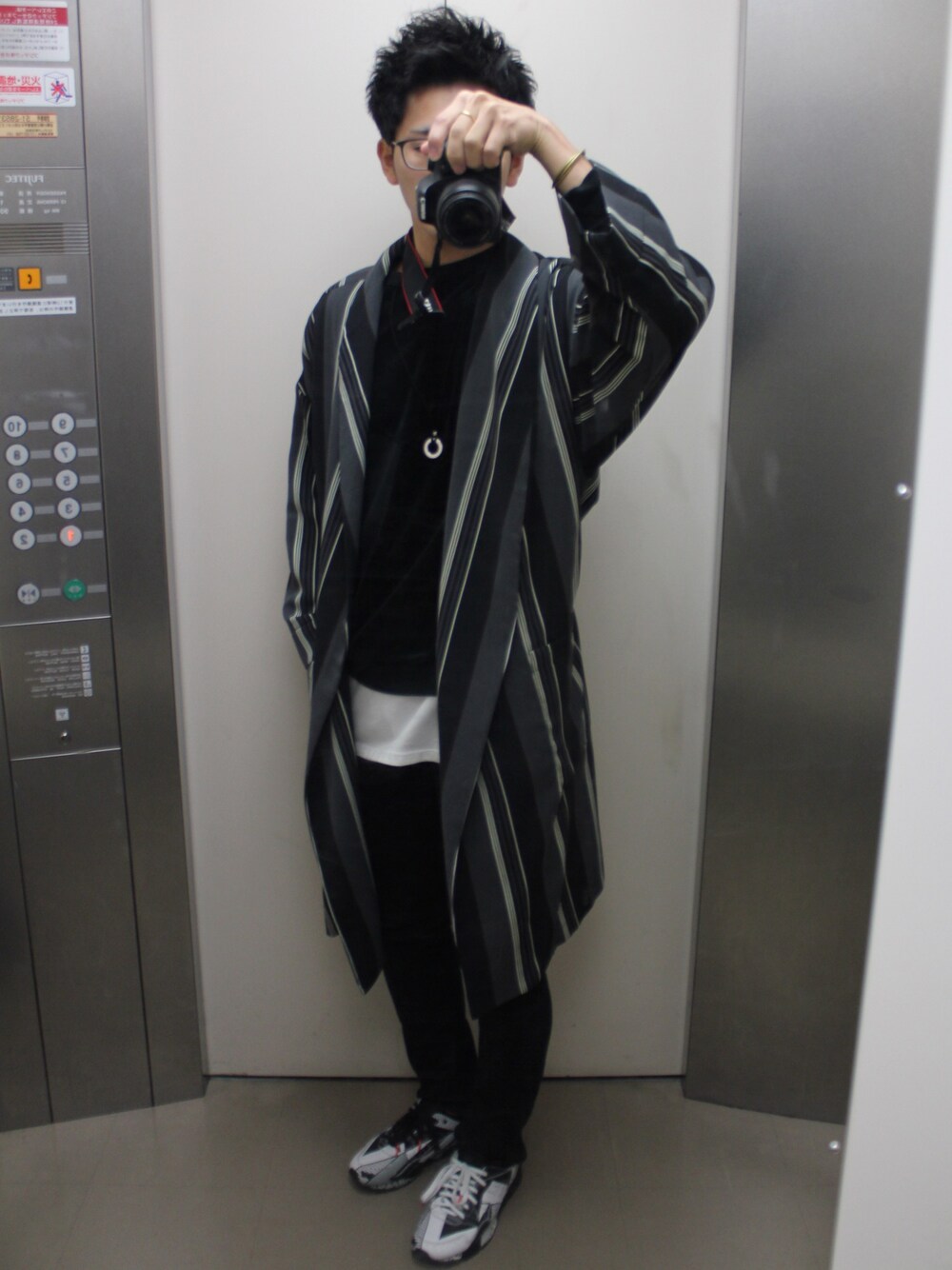 HAREの新作!クレイジーストライプガウン着てみました! モノトーンになので地味になりすぎないように、ベロア生地のインナーにレイヤード丈のシャツもきてみました!