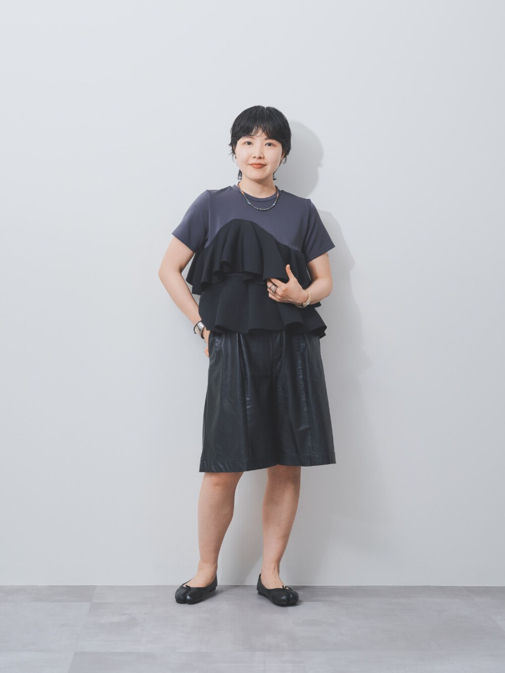 DOLLUPOOPS_TEVALT(DOLLUPOOPS_TEVALT)のTシャツ/カットソー「アシメフリルティアードトップス」を使ったコーディネート