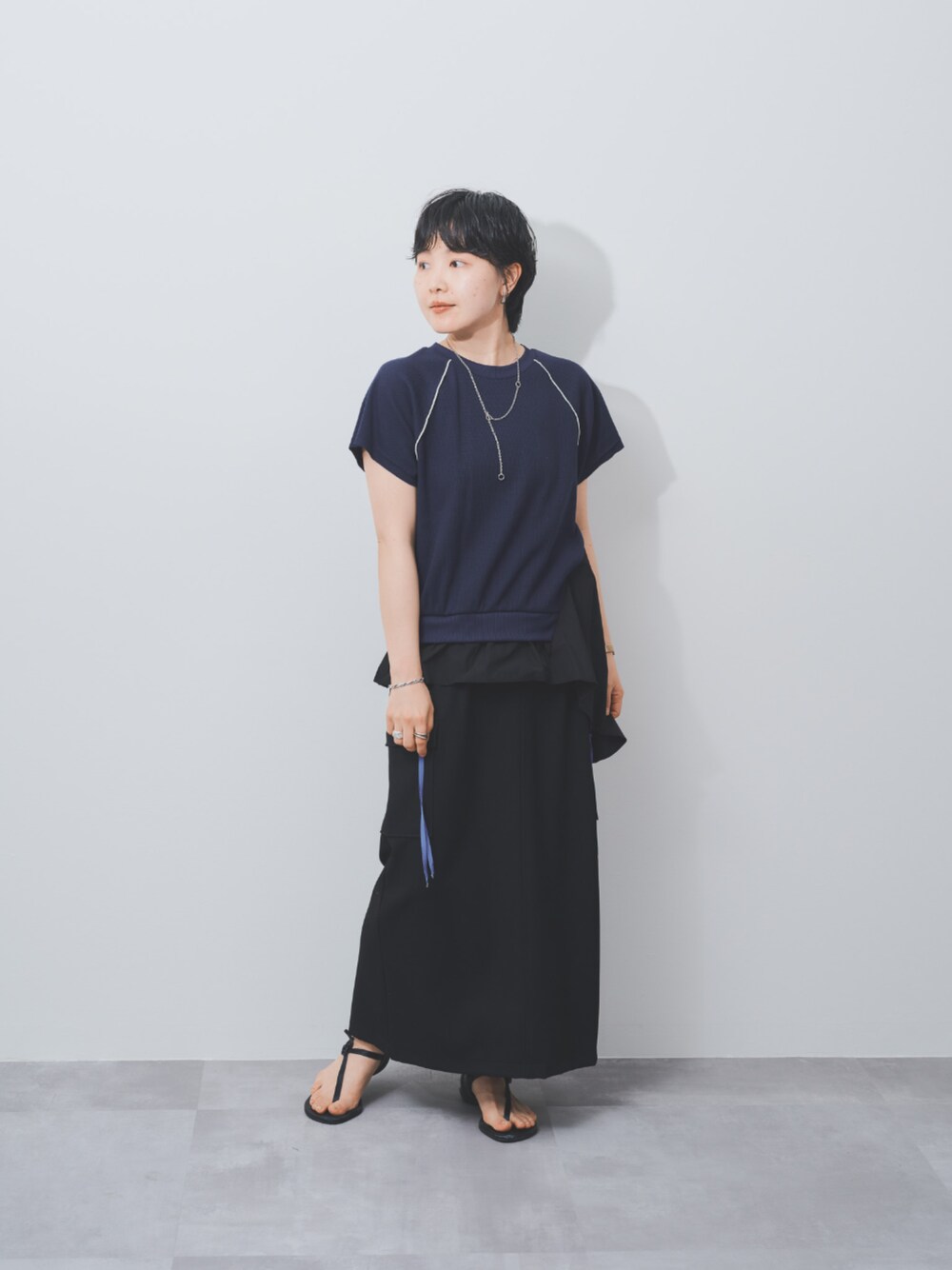 DOLLUPOOPS_TEVALT(DOLLUPOOPS_TEVALT)のTシャツ/カットソー「ワッフルアームホール配色アシメヘムトップス」を使ったコーディネート