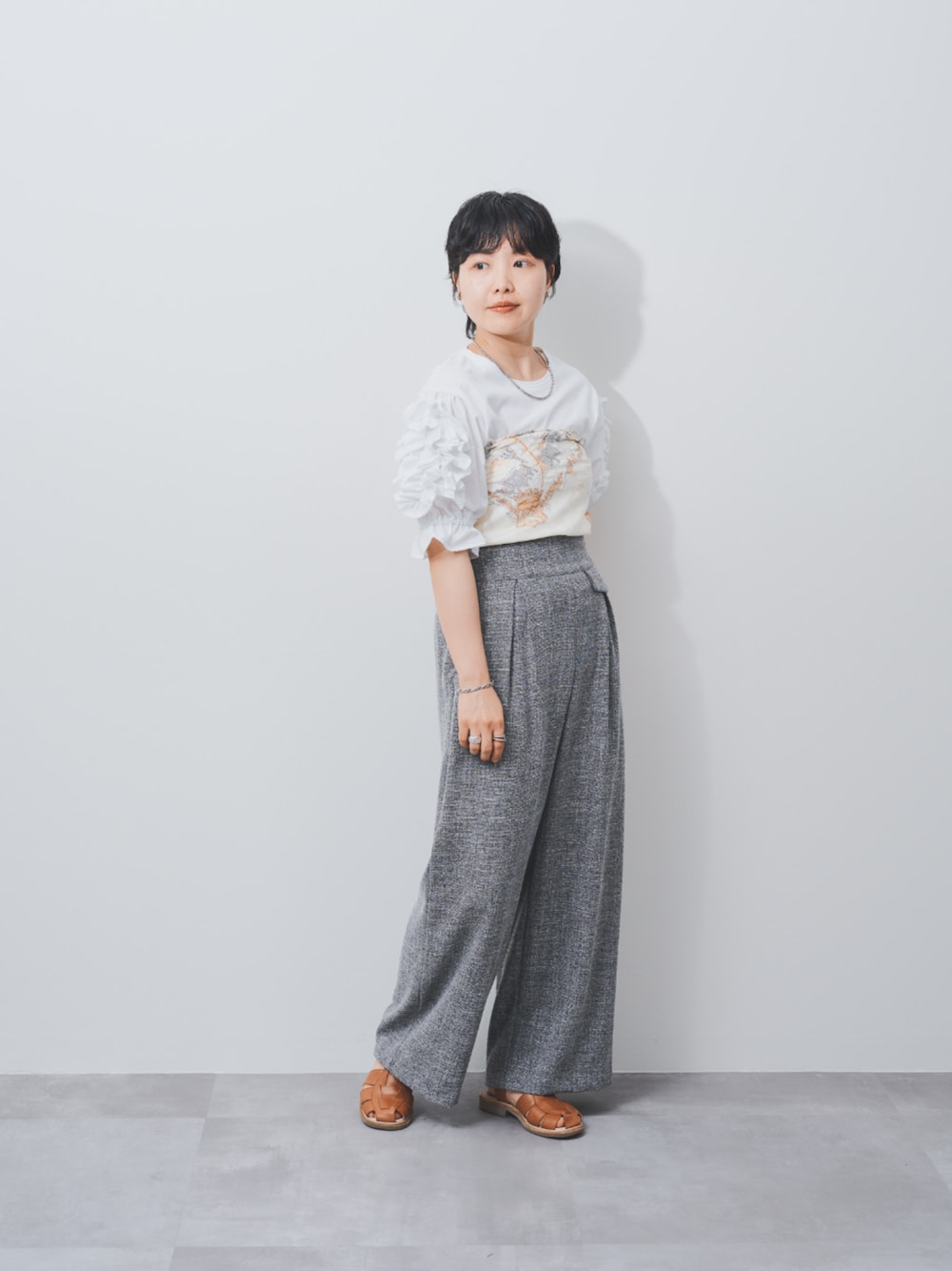 DOLLUPOOPS_TEVALT(DOLLUPOOPS_TEVALT)のTシャツ/カットソー「フリルモチーフスリーブトップス」を使ったコーディネート