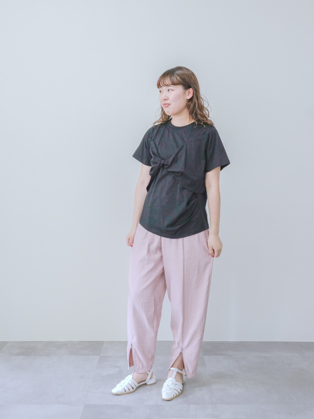 DOLLUPOOPS_TEVALT(DOLLUPOOPS_TEVALT)のTシャツ/カットソー「フロントツイストアシメヘムトップス」を使ったコーディネート