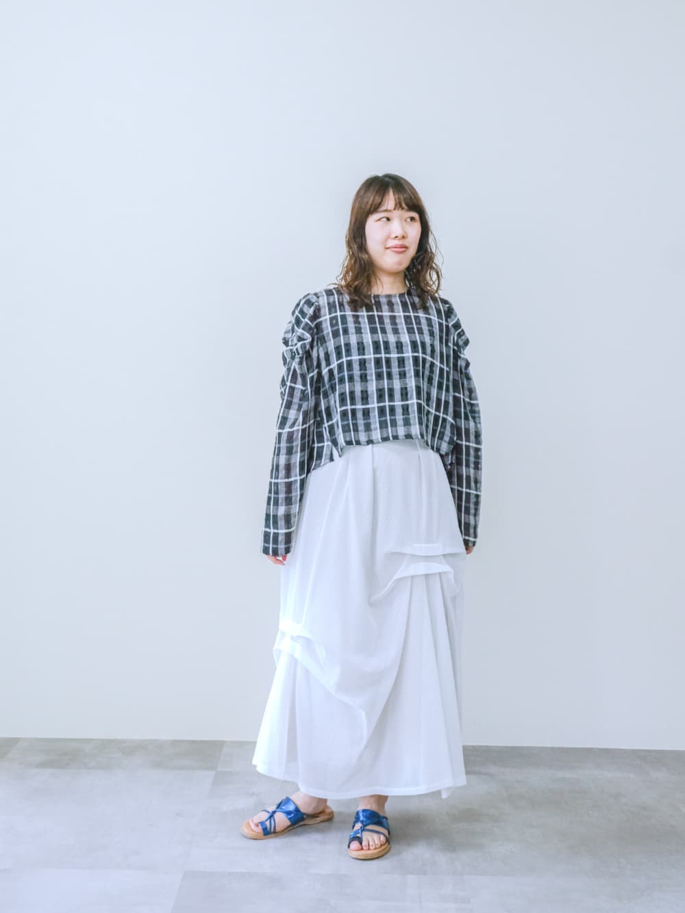 DOLLUPOOPS_TEVALT(DOLLUPOOPS_TEVALT)のシャツ/ブラウス「チェックタックスリーブブラウス」を使ったコーディネート