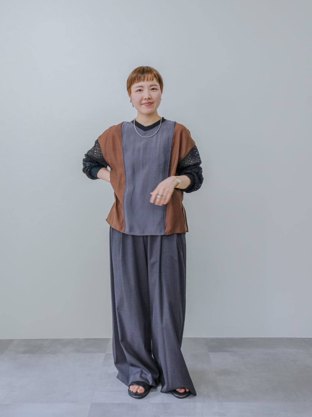DOLLUPOOPS_TEVALT(DOLLUPOOPS_TEVALT)のシャツ/ブラウス「配色異素材切替トップス」を使ったコーディネート