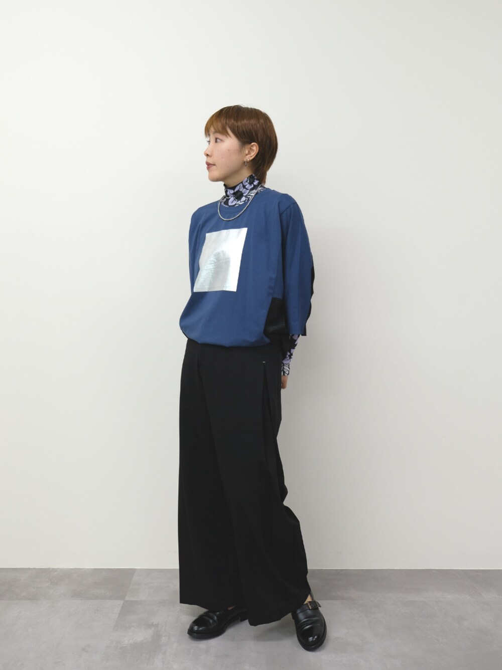 DOLLUPOOPS_TEVALT(DOLLUPOOPS_TEVALT)のスラックス「サイドプリーツ配色ステッチパンツ」を使ったコーディネート
