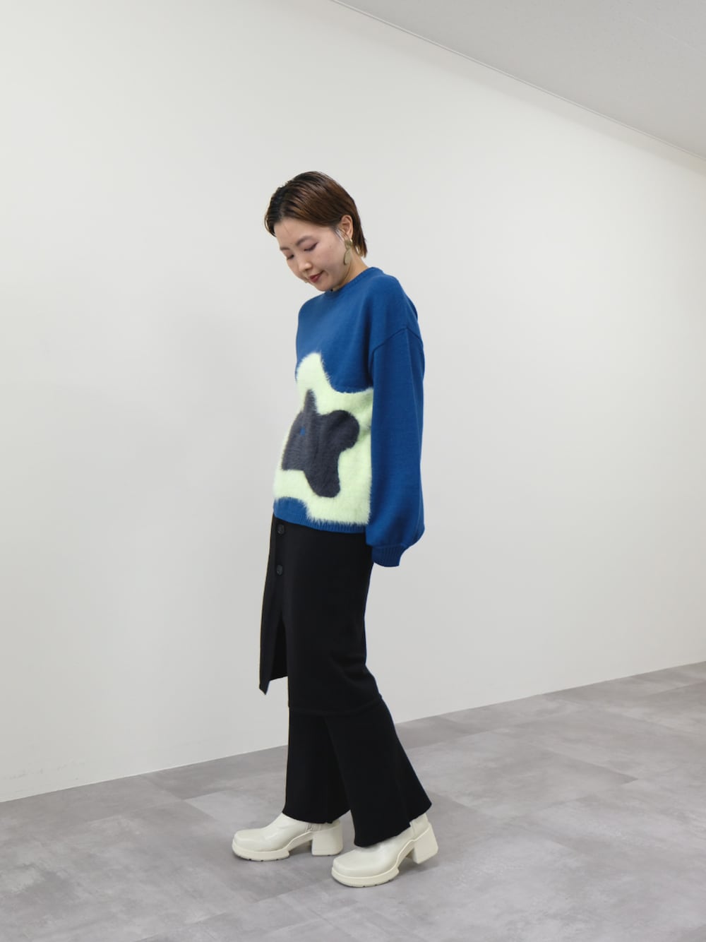 DOLLUPOOPS_TEVALT(DOLLUPOOPS_TEVALT)のニット/セーター「フラワーモチーフニットトップス」を使ったコーディネート