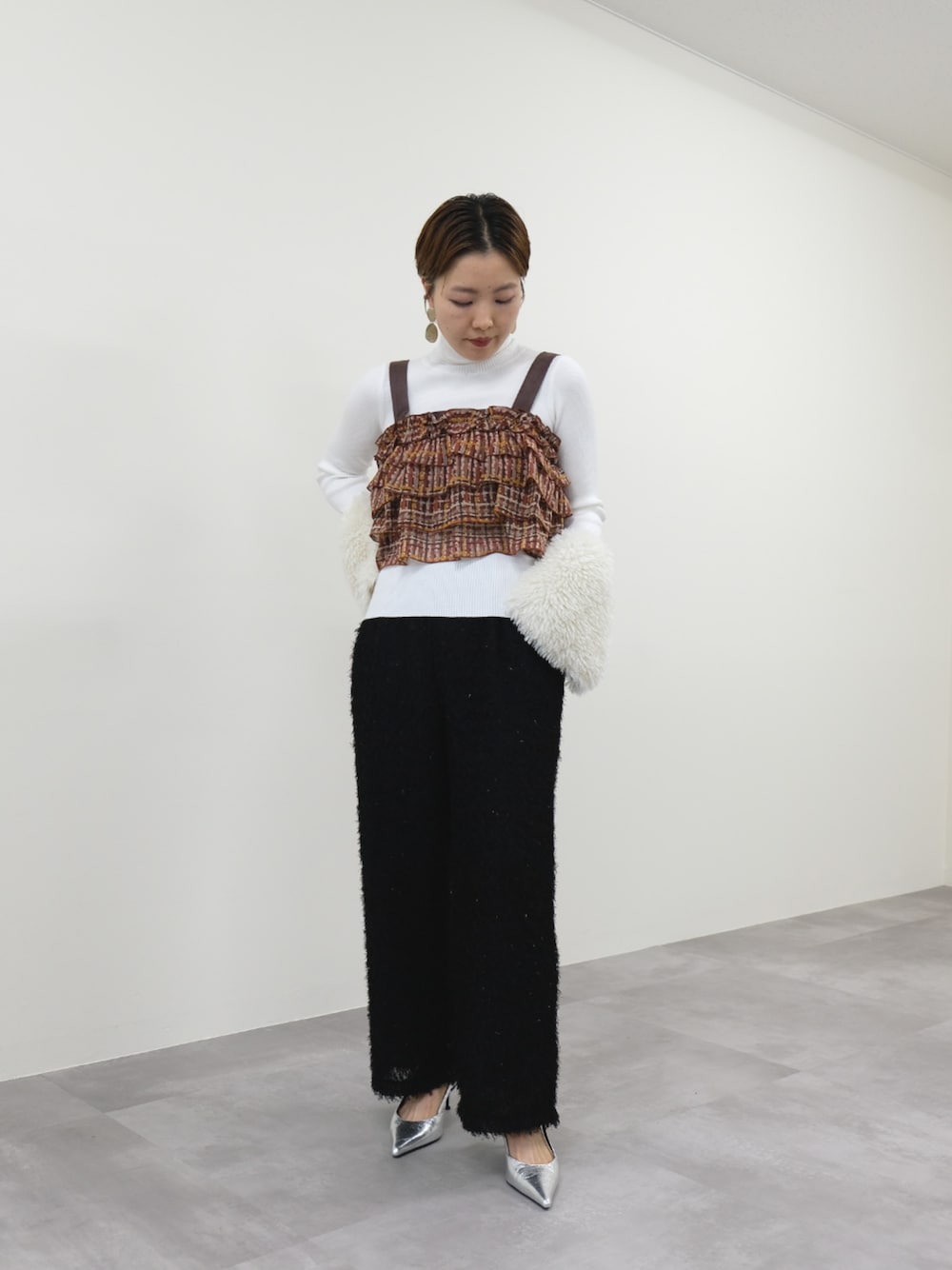DOLLUPOOPS_TEVALT(DOLLUPOOPS_TEVALT)のその他トップス「チェックプリントフリルティアードビスチェ」を使ったコーディネート