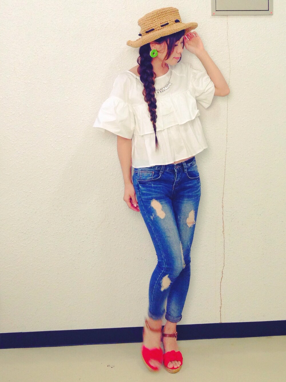 MAIKOのシャツ/ブラウス「ビジュー付ティアードブラウス」を使ったコーディネート