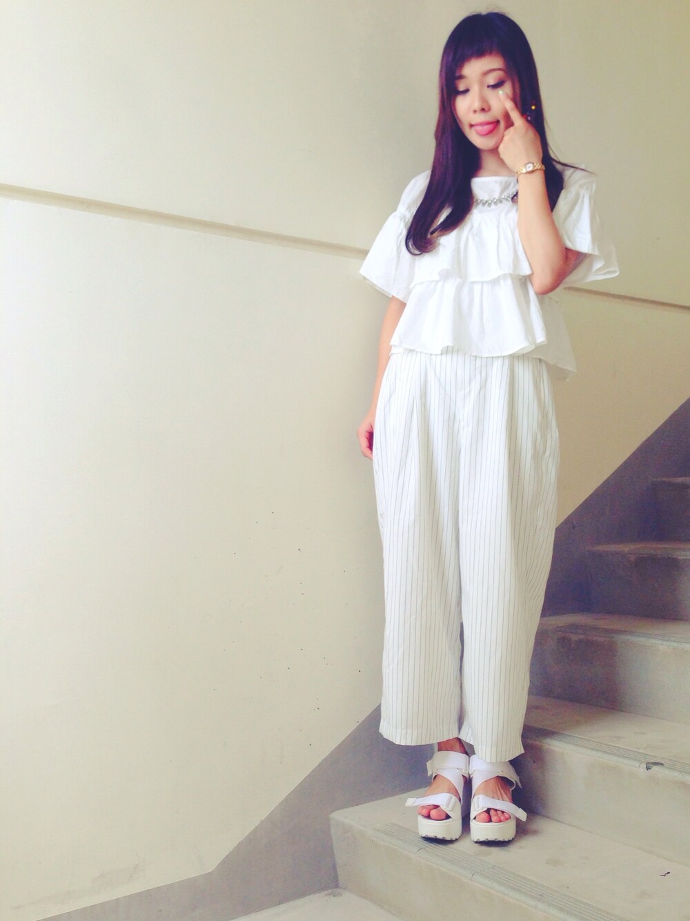 MAIKOのシャツ/ブラウス「ビジュー付ティアードブラウス」を使ったコーディネート