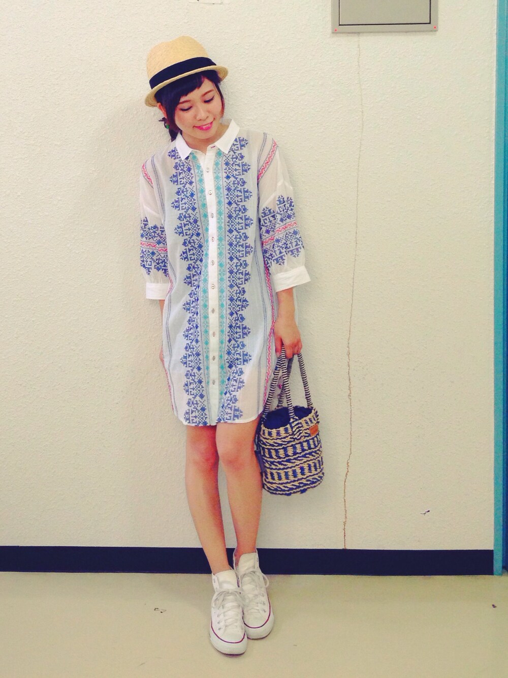 MAIKOのシャツワンピース「ローンクロスステッチシャツワンピース/AEBC LAWN クロスステッチ SH OP◆」を使ったコーディネート