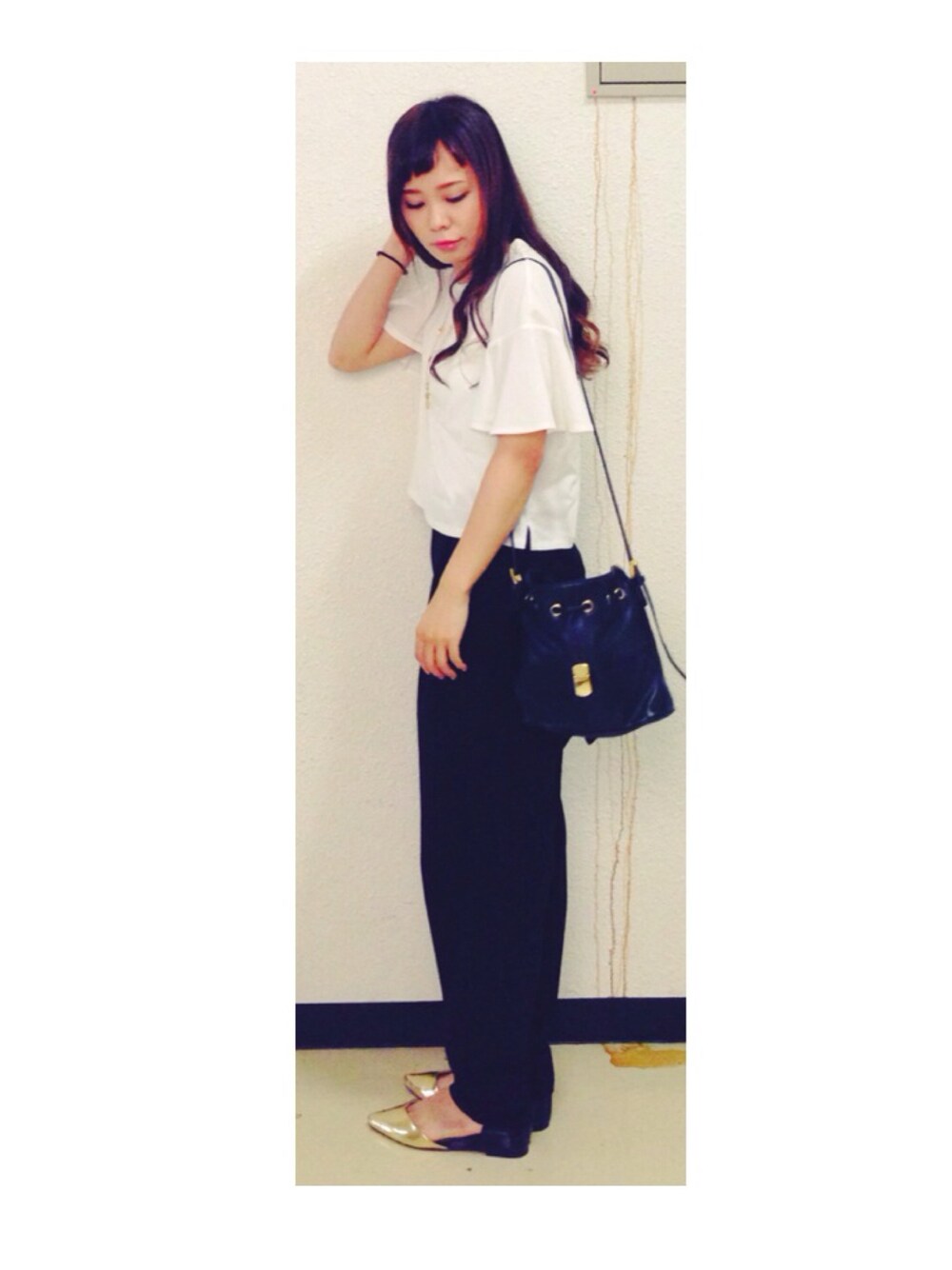 MAIKOのTシャツ/カットソー「【FEMININE】ドロップショルダーフリルTOPS」を使ったコーディネート