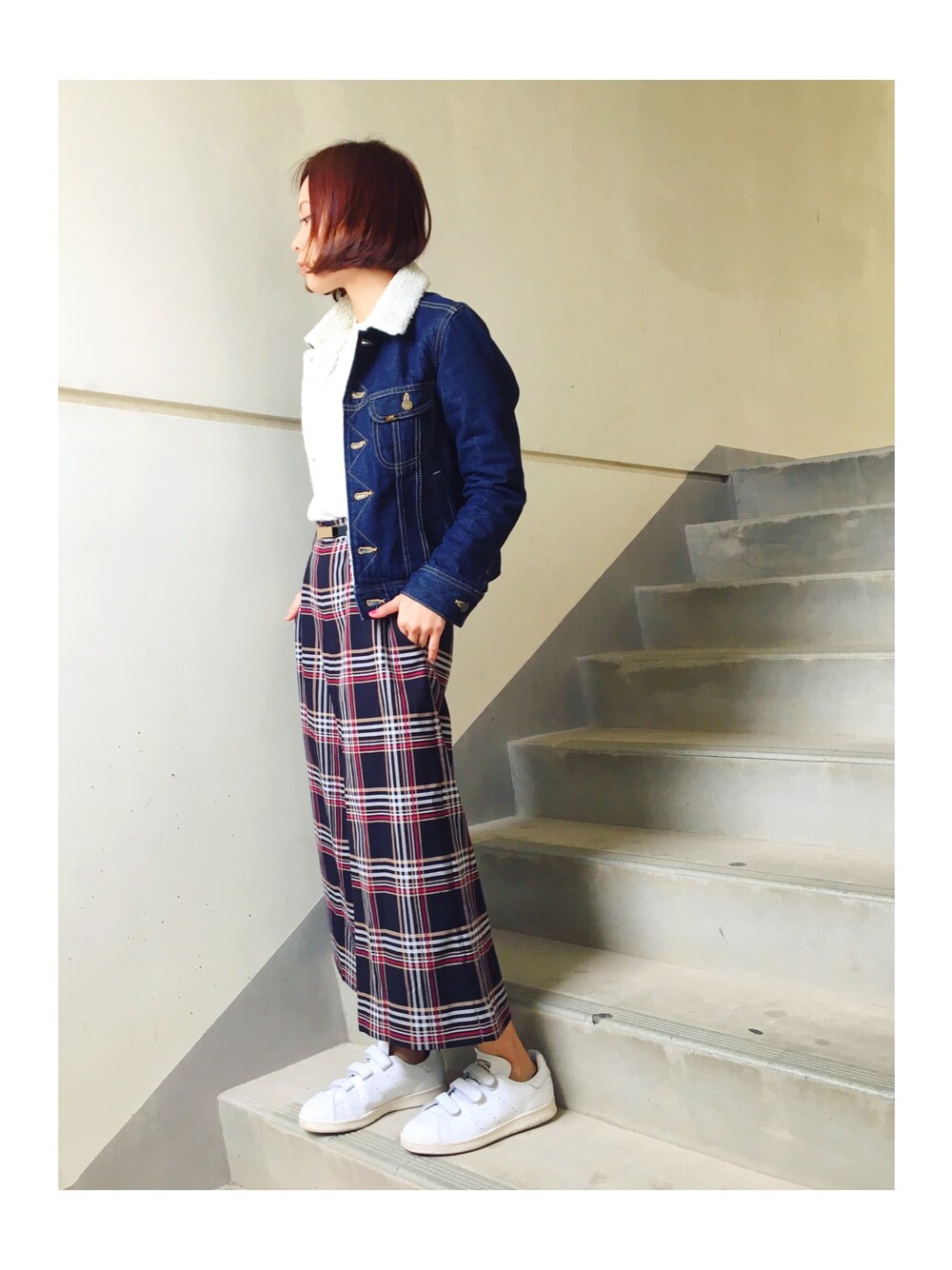 MAIKOのデニムジャケット「Lee×UR STORM RIDERボアジャン」を使ったコーディネート