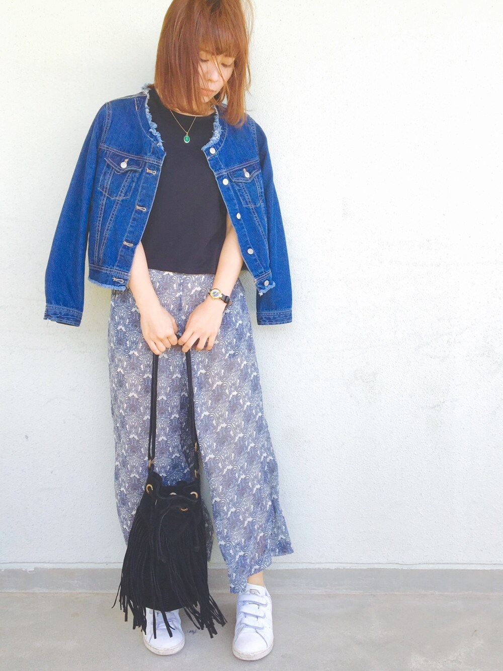 MAIKOのデニムジャケット「ノーカラーGジャン」を使ったコーディネート