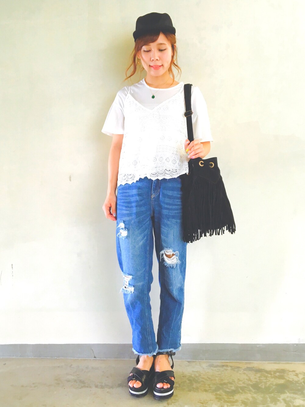 MAIKOのTシャツ/カットソー「【FEMININE】ドロップショルダーフリルTOPS」を使ったコーディネート