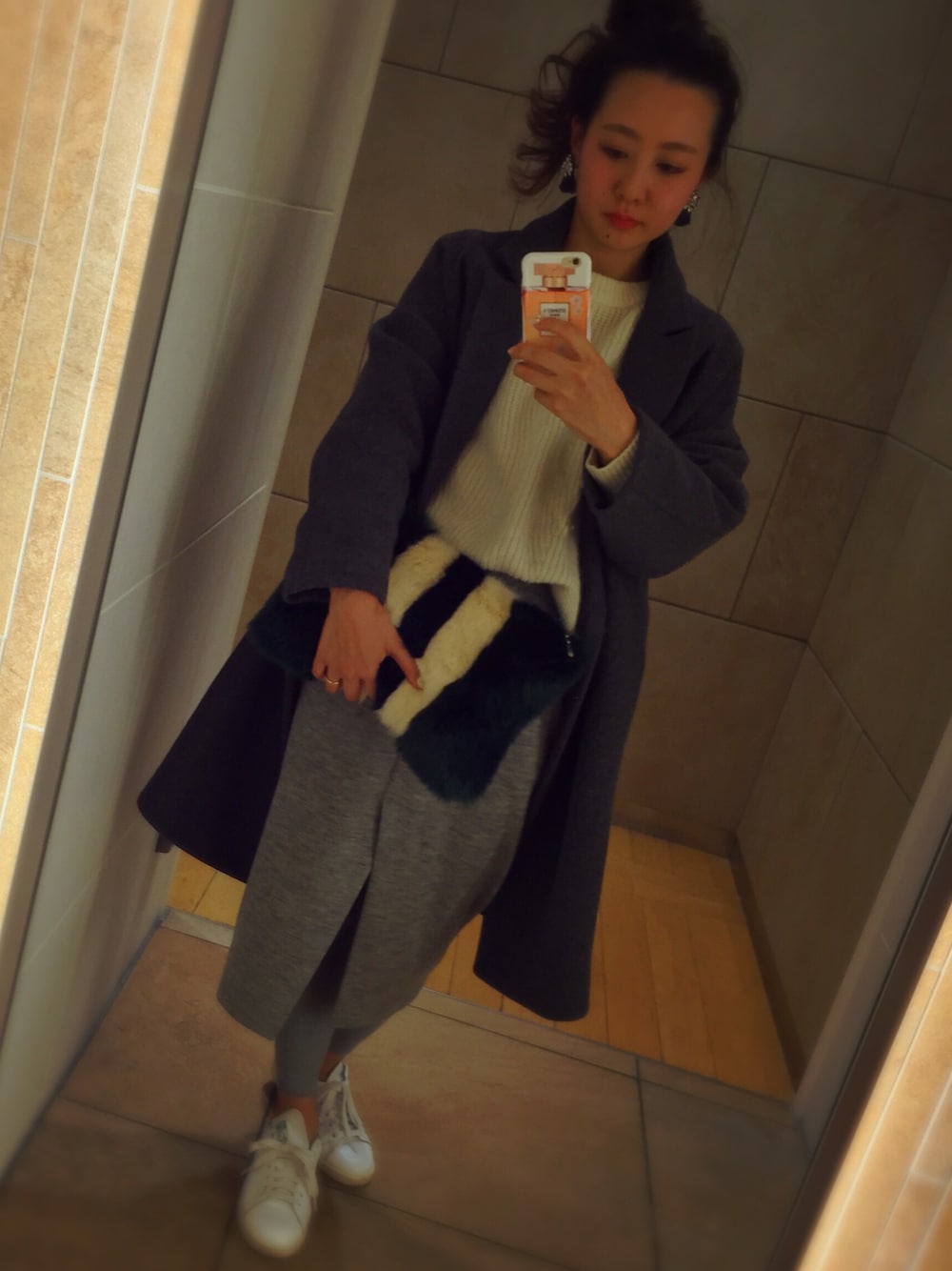 am. ☺︎のクラッチバッグ「BY Chic Choc ラインフェイクファークラッチ◆」を使ったコーディネート