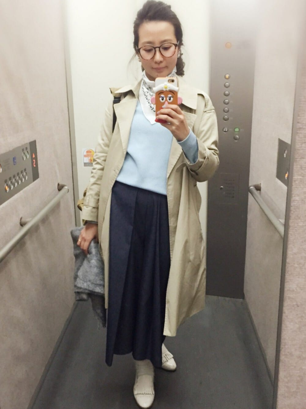 3/4 ブルーニット×デニムガウチョ ガウチョの流行りも 終わりを迎えてるかもだけど、 このガウチョのデザインかわいーから 履いていーですか❓😭😚 シルクバンダナを巻き巻き♡ いつもと違う巻き方してみた✨ Vネックのニットだと すかすかしてまだ肌寒いけど、 この巻き方 意外と首元あったか〜 てか、 この前 好きなお店行ったら バンダナを こーゆー巻き方してる ボディがあったんです😳 この巻き方アリなんだ〜❗️ ってことで、 早速実践‼️