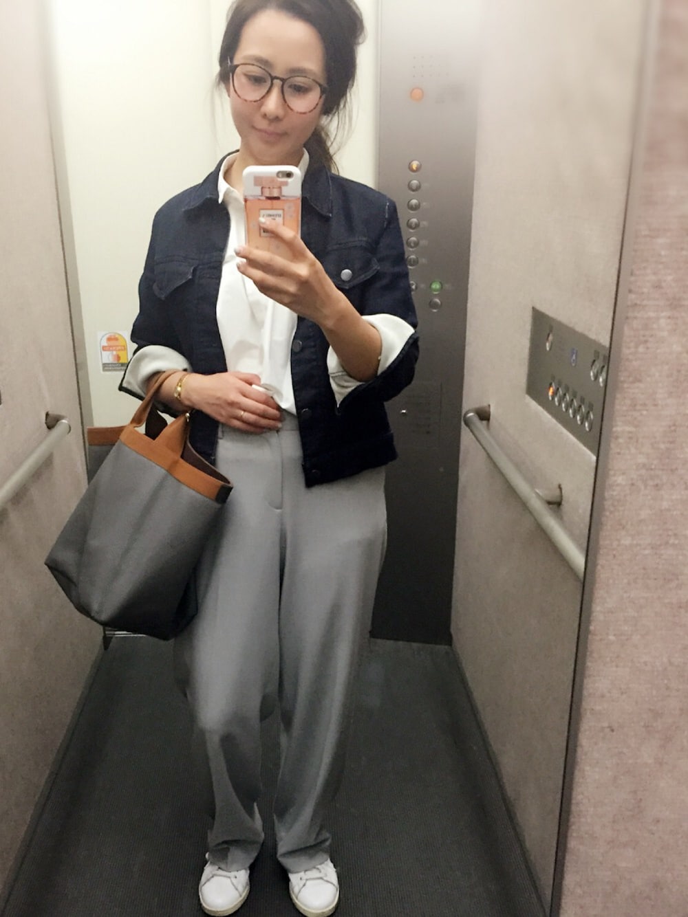 白シャツにジージャン× グレーワイドパンツ♡ 今日は白シャツにジージャン羽織ってみた。 いつもジージャンの下は、 カットソーしかあわせたことなかったけど、 お仕事だし、きちんと感だしとこって 思いまして😊 意外としたことない組み合わせだったけど、 今日オシャレって褒められた 😳💕 うれしー⭐️ お仕事1日頑張れました😚
