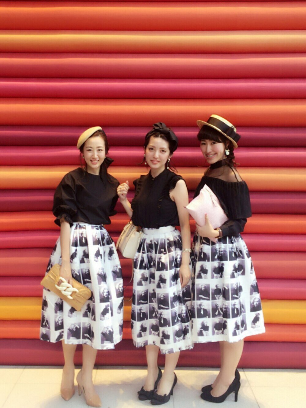 5/8 今日は待ちに待ったJさまの結婚式♡♡♡ ✨💒..✨ とゆーことで 仲良し3人でマリリンモンローのスカート合わせて二次会から参加しました😚😆😊💕 ヘッドアクセとトップス、バッグは それぞれの個性いかして スキなデザイン選びました😆