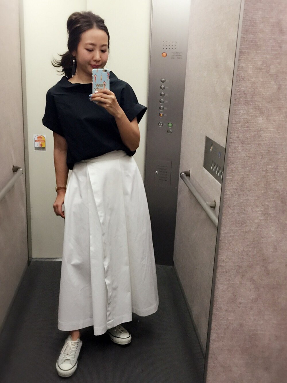 シェトワの タイプライターオフショル😚♡ あまり見ないデザインで 可愛くて 即決✨ ザデイズトウキョウの 白のチノスカートと合わせてみましたぁ❤️