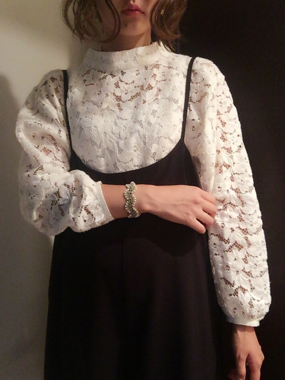 いつものサロペットに レースのトップス合わせてみました♡