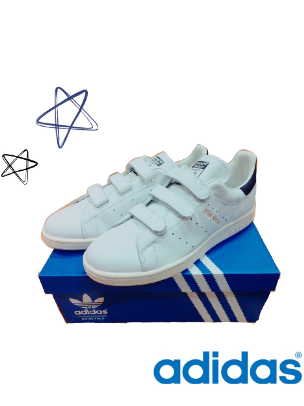 念願のスタンスミス👍🏻 ほんとにどんなコーデにも合う 万能なスニーカー😱💓 色は定番の緑じゃなくてネイビー💪🏻 ベルクロかわいい〜
