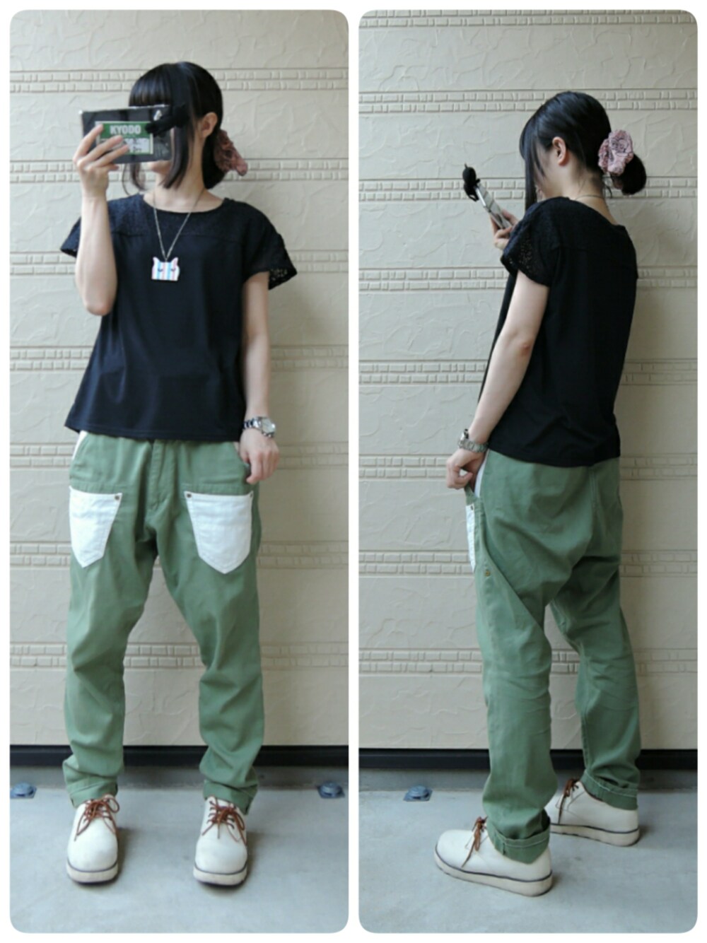 今日はシンプルですo ほぼ仕事でしか着ない ロペピクニックのトップスo 青めのネイビーももってて、ヘビロテしてますo シンプルすぎるので 髪の毛にリボンをつけて ネックレスを足しましたo 安定のサルエルo