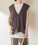 トープカラーが珍しいベストに 着丈の長いシアーのカットソーを合わせ レイヤードすればこなれ感もプラスに◎ ロゴtなど合わせればカジュアルにstyleになるので着回しも沢山出来ます♪ insta→@yuuuu000