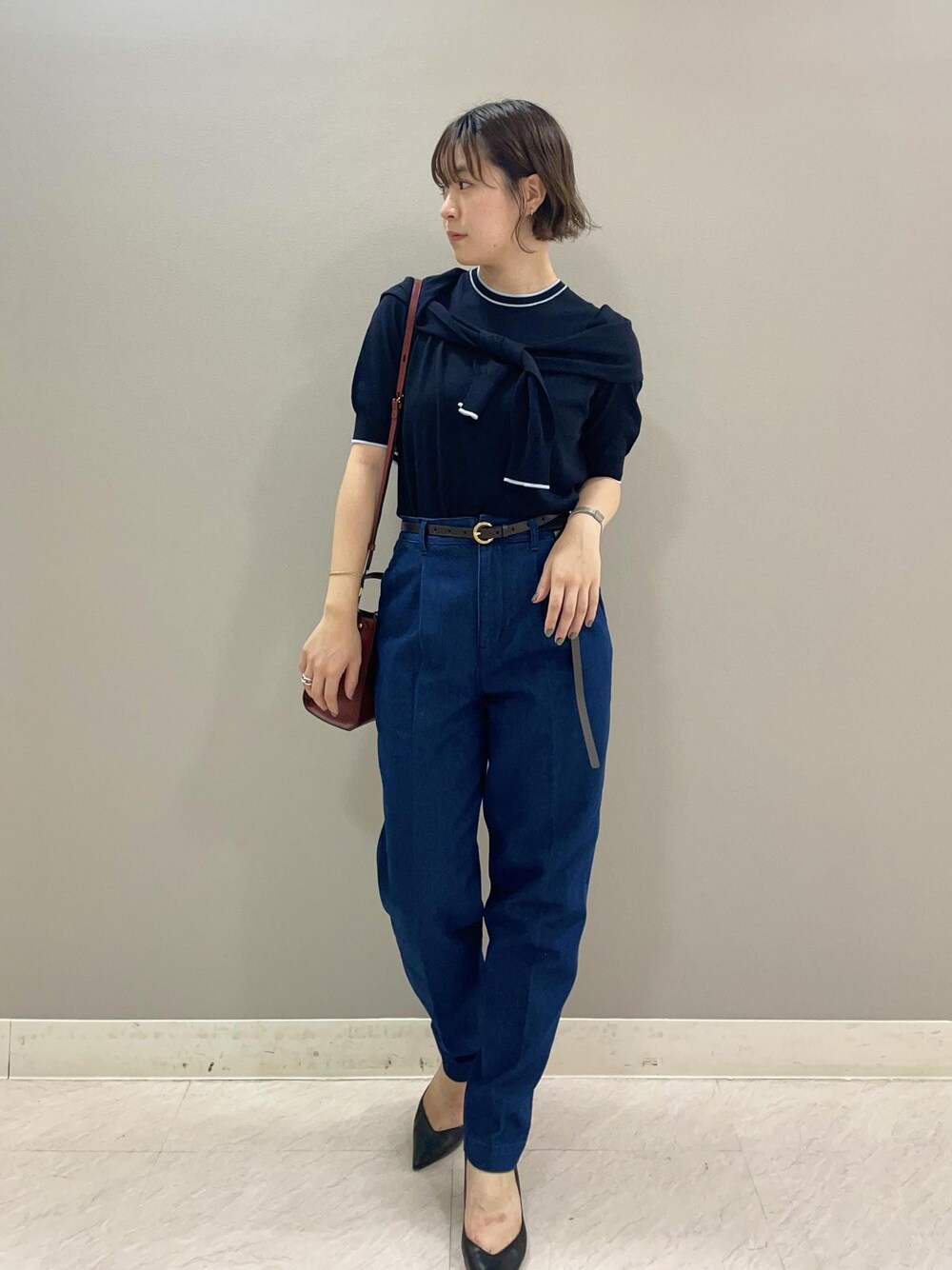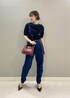 大好きなネイビーに デニム×ブラックの組み合わせで 落ち着いたトーンにしつつ ワインカラーのバッグを差し色に◎ シンプルなのに旬に仕上がる秋アイテム!