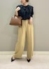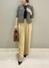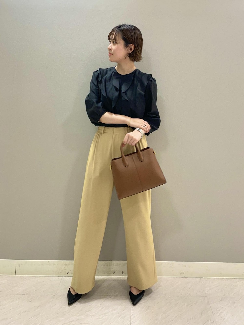 フリルブラウスやウエストギャザーパンツなど 華やかなデザインでスタイリングしました! 縦フリルが甘さ控えで、大人っぽいかっこいい印象に。 otonaMUSE 10月号に掲載されているツイードジャケットを 肩掛け羽織にした旬な組み合わせも好きです◎ 色や素材感、デザインを楽しめる秋コーデにおすすめです!