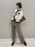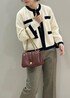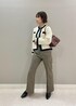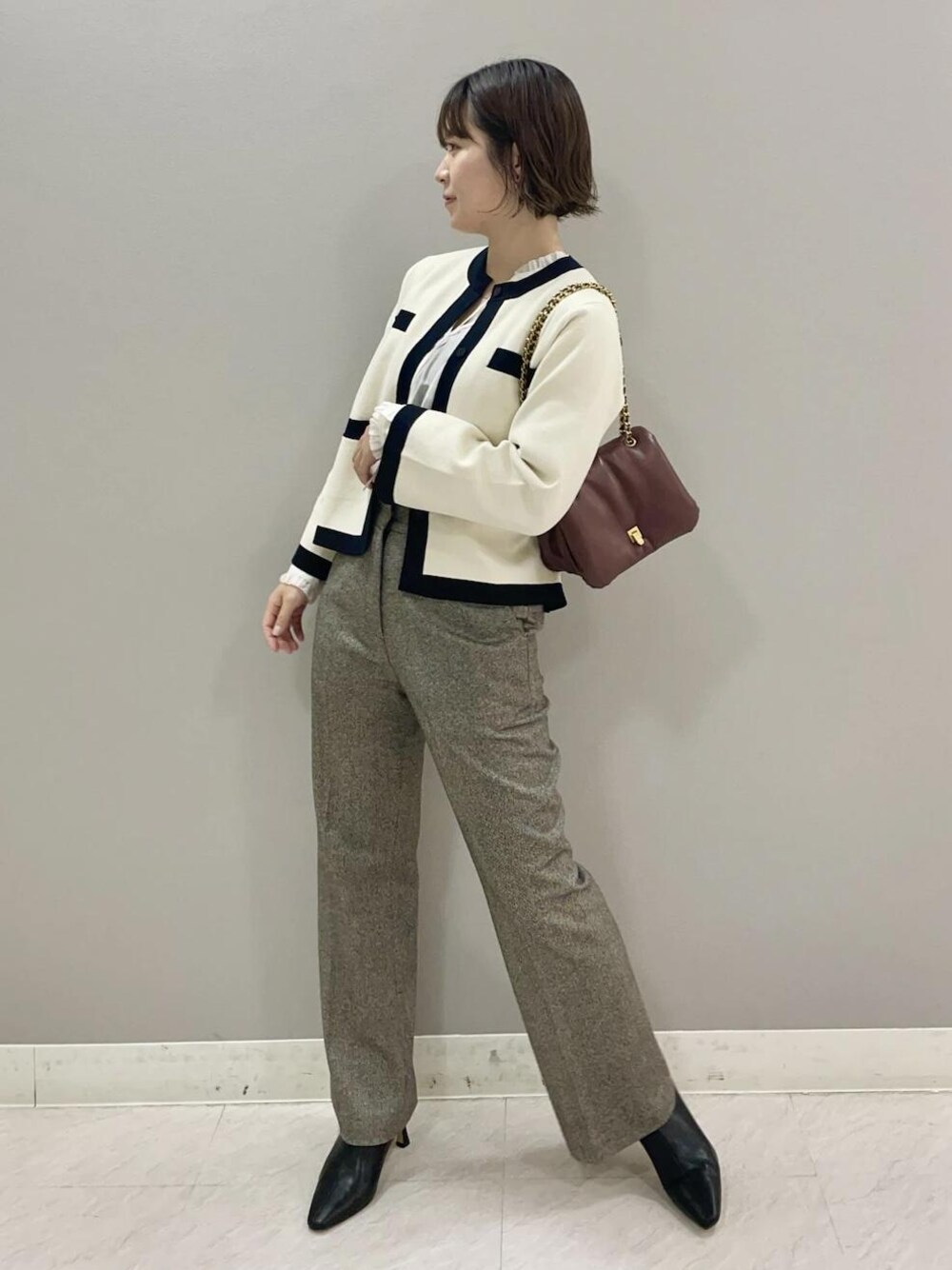 全体はシンプルな色味でまとめながらも バイカラーのカーディガンがアクセントに。 それぞれのアイテムの素材感や質感が リッチな秋ムードに仕上げてくれます◎