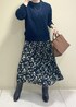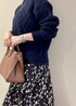 ボリューミーなケーブルニットと 揺れ感が綺麗なプリーツスカート。 小物はブラウン系でまとめることで ロングブーツもハードすぎずやわらかい印象に◎