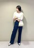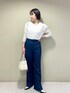 ホワイトのレーストップスと 落ち着いたインディゴカラーのパンツで仕上げた キレイめカジュアルで一気に春らしく♡ イエローのカーディガンは今回差し色に。 小物やアウターは何色を合わせても間違いないです!
