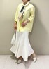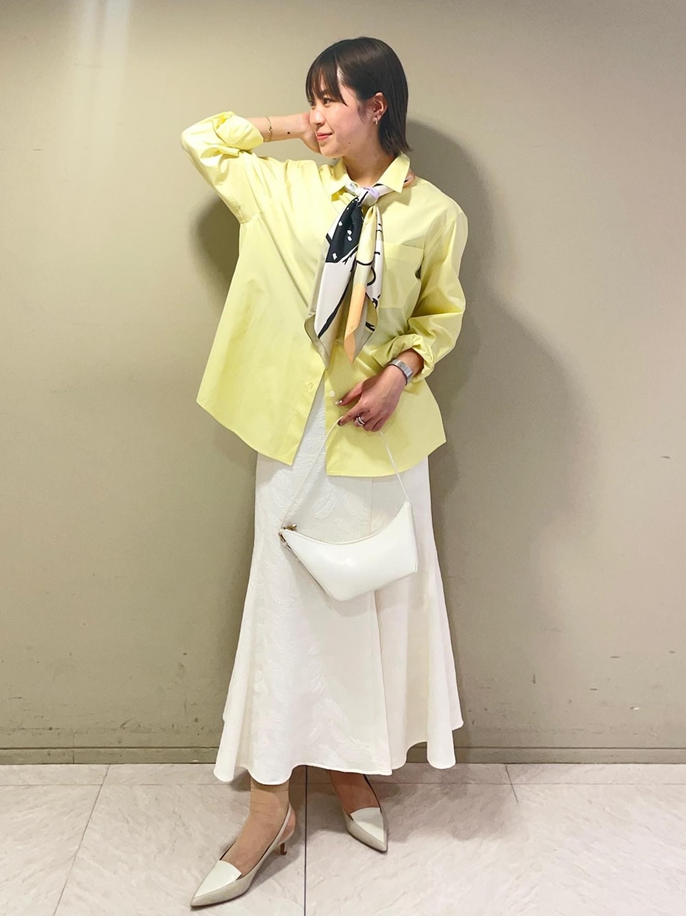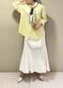 春気分を高めてくれるイエローを主役に♡ 全体はホワイトやベージュの柔らかい色合いで仕上げました! 華やかなロートレックのスカーフもポイントに。