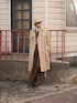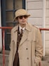 今回はレトロな背景でレトロなコートスタイル🧥 インナーを派手に遊んだので、 トレンチコートで大人エレガントにまとめました👌 デニムセットアップはいつ着ても決まるな〜